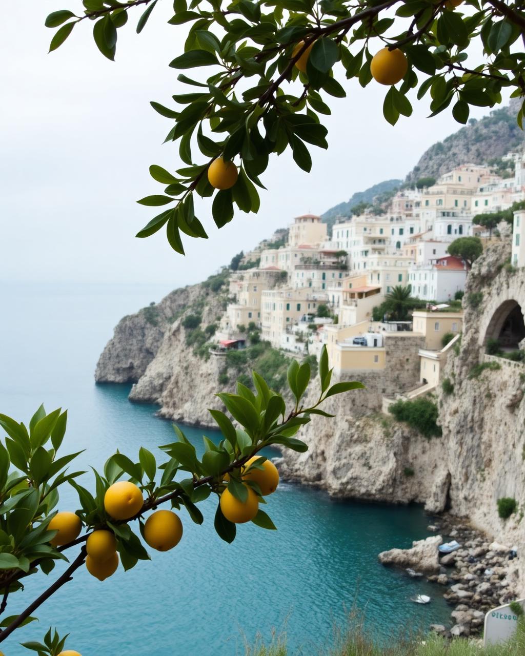 A lemon grove spills perfume into the late afternoon while every laugh feels kissed by the coast.